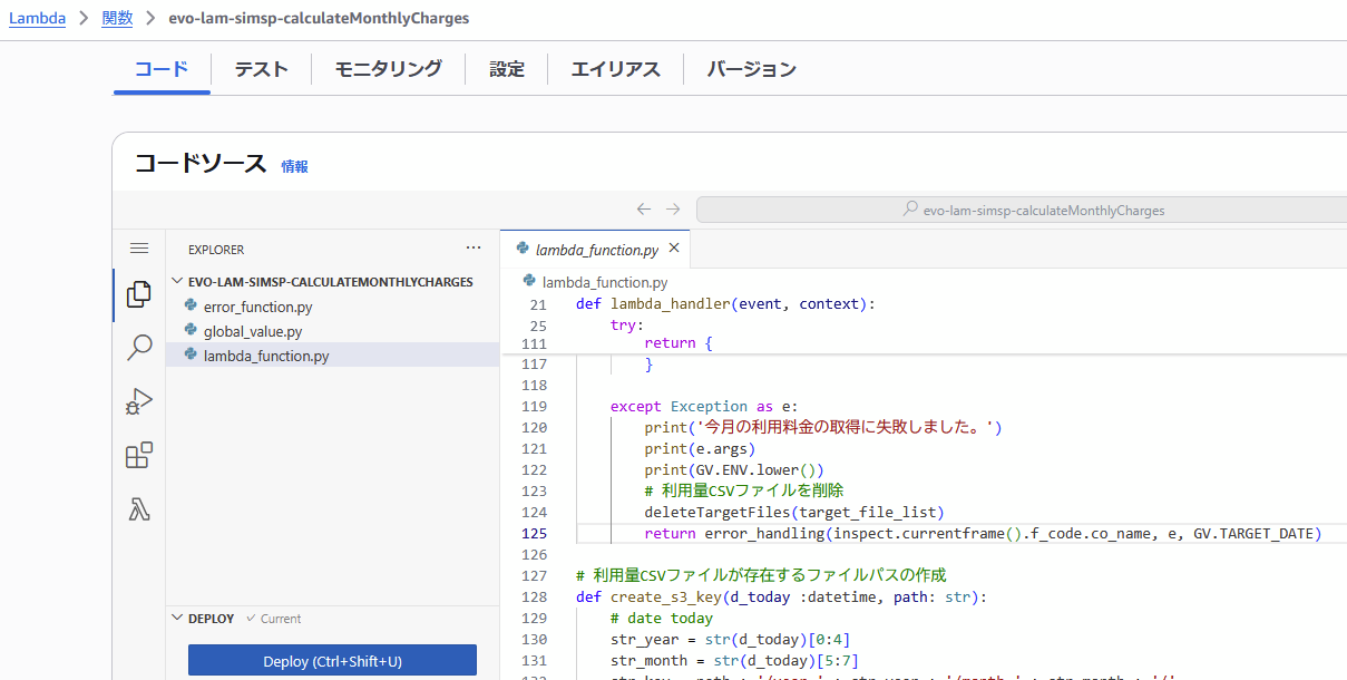 evo-lam-sim-calculateMonthlyChargesを呼び出して実行しているが、利用料の取得に失敗した場合にそこで定義されていない環境変数を呼び出してエラーになっている。