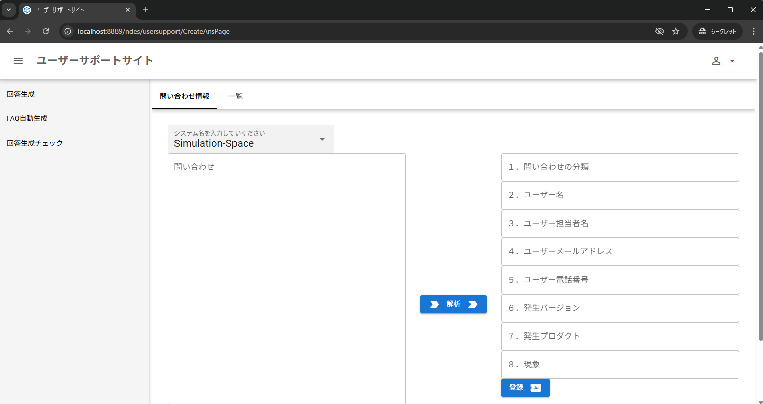 ローカル環境でユーザーサポートサイトが開くことを確認